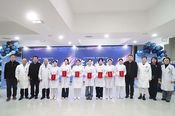 长春医学高等专科学校副校长刘洋对全体实习生致以热烈祝贺与美好祝福,感谢医院扎实的带教。同时,寄语同学们要树立终身学习的理念,紧跟医学前沿技术,在临床实践中锤炼专业技能,在科研探索中突破创新,以“精益求精”的态度提升医疗服务能力。
