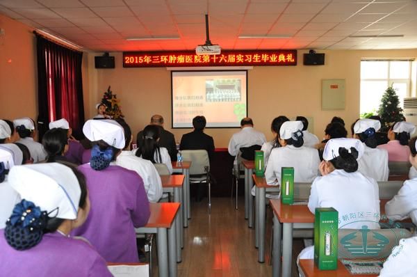 我院61名实习同学的临床实习圆满结束,中国医学科科学院肿瘤医院派驻周纯武院长,河北省沧州医学高等专科学校教务处金玉忠主任、护理系李吉勇书记、护理系助产教研室王丽君老师、驻京李元芳老师,我院张院长、甘院长、护理部及科教科主任、全院带教老师参加了本次毕业典礼。