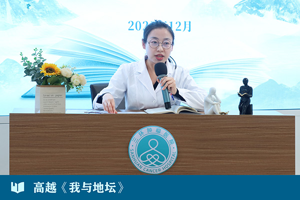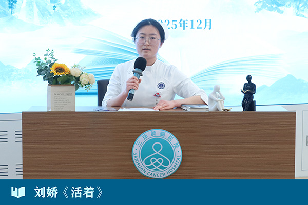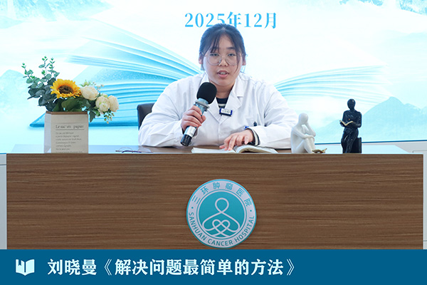 经管科高越深耕《我与地坛》,解锁与苦难安然相伴的生命哲思;门诊刘娇细述《活着》,诠释接纳风雨、与命运释然相拥的生命韧性;诊断科刘晓曼解读《解决问题最简单的方法》,拆解焦虑谜题、支招减压之道;后勤张桂红品读《幸福要回答》,解锁向阳而生、悦纳自我的幸福密钥;综合一病区何晨韵漫谈《人间草木》,于烟火寻常处探寻热爱生活的本真;肺癌中心刘茜茜分享《死亡如此多情》,彰显医者敬畏生命、守护初心的责任担当;综合二病区郝一骏以《人间小满》收束,传递接纳不完美、珍惜当下的生活智慧,将向上向善的正能量传递给在场每一位同仁。
